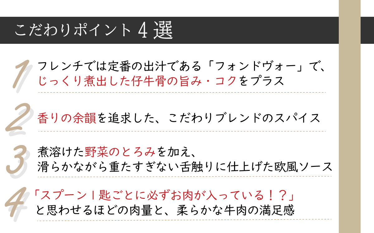 ・「フレンチシェフのこだわり欧風ビーフカレー」プロの創作から生まれた、