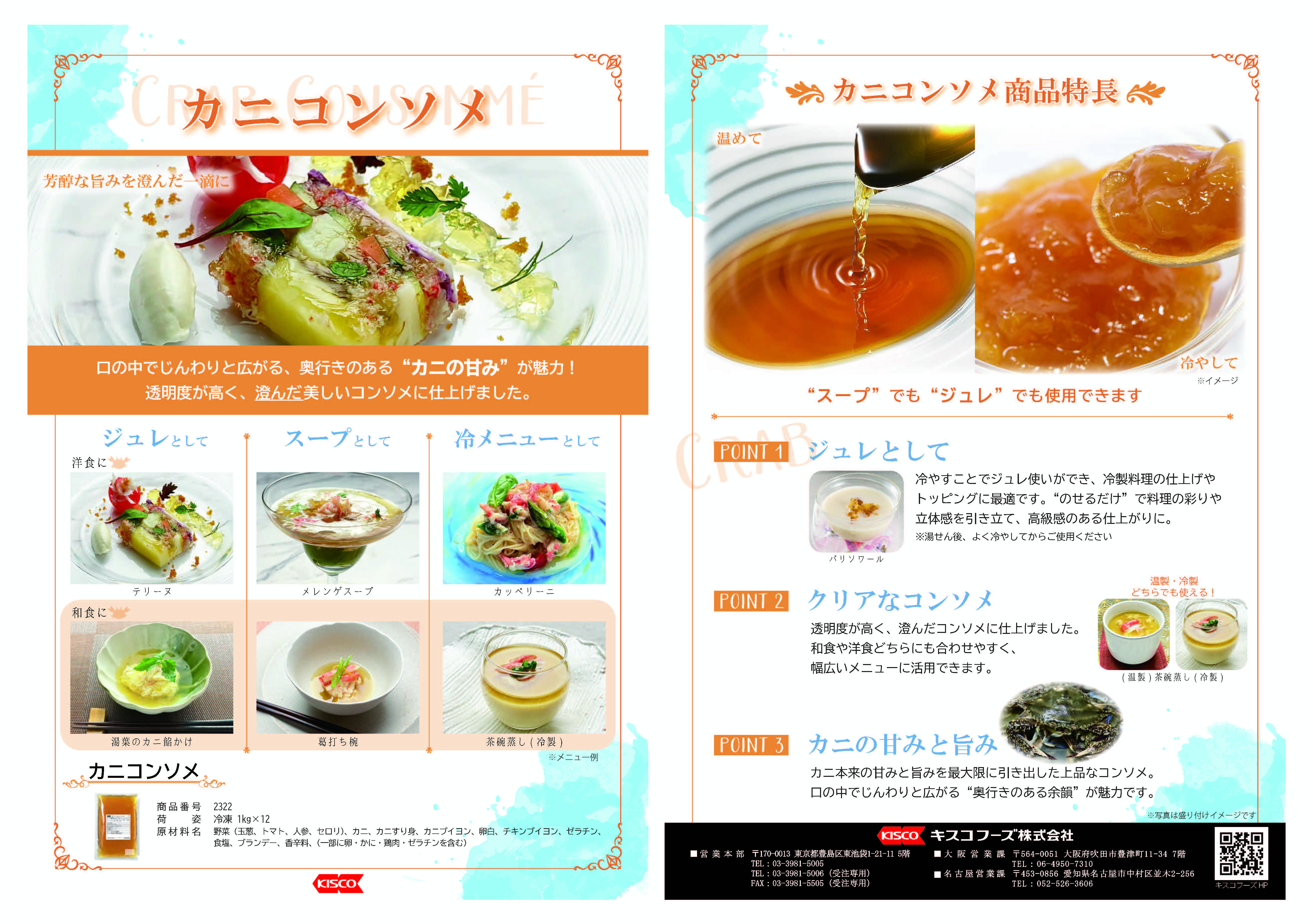 カニ本来の甘みと旨みを最大限に引き出した、上品なコンソメです。